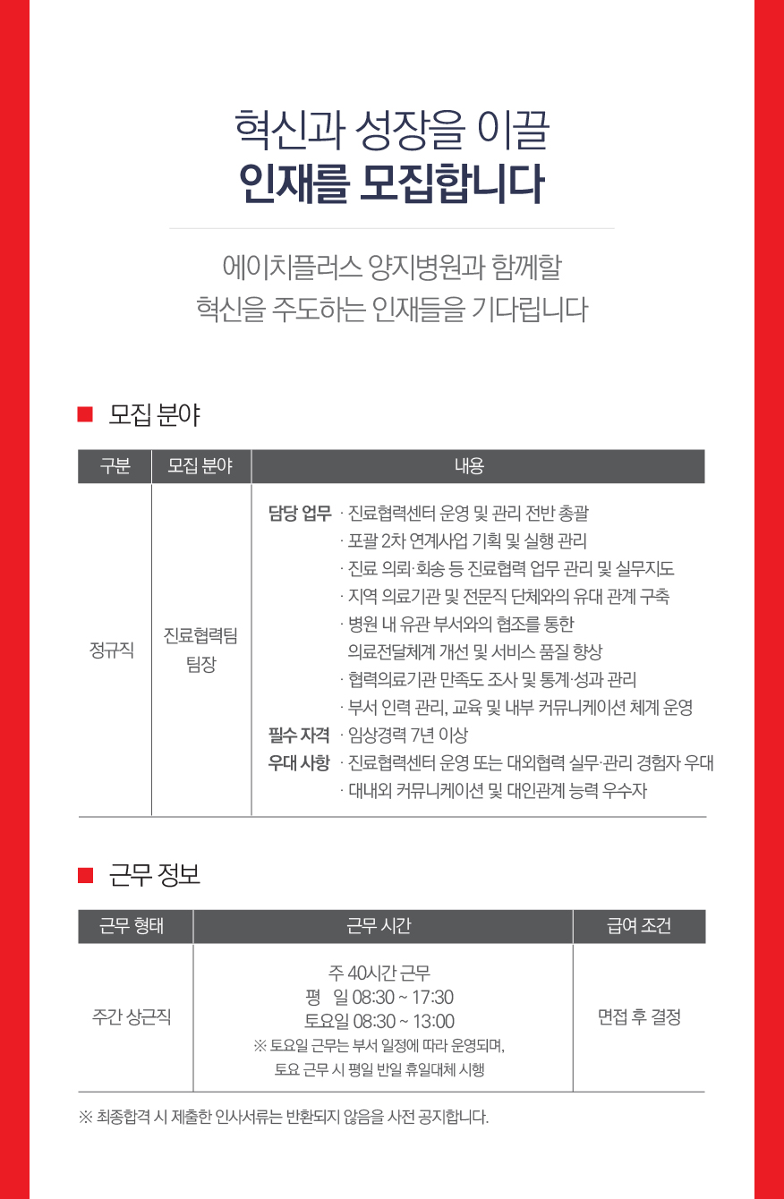 진료협력팀 | 간호사 (간호) | 경력 | [근무지] H+양지병원